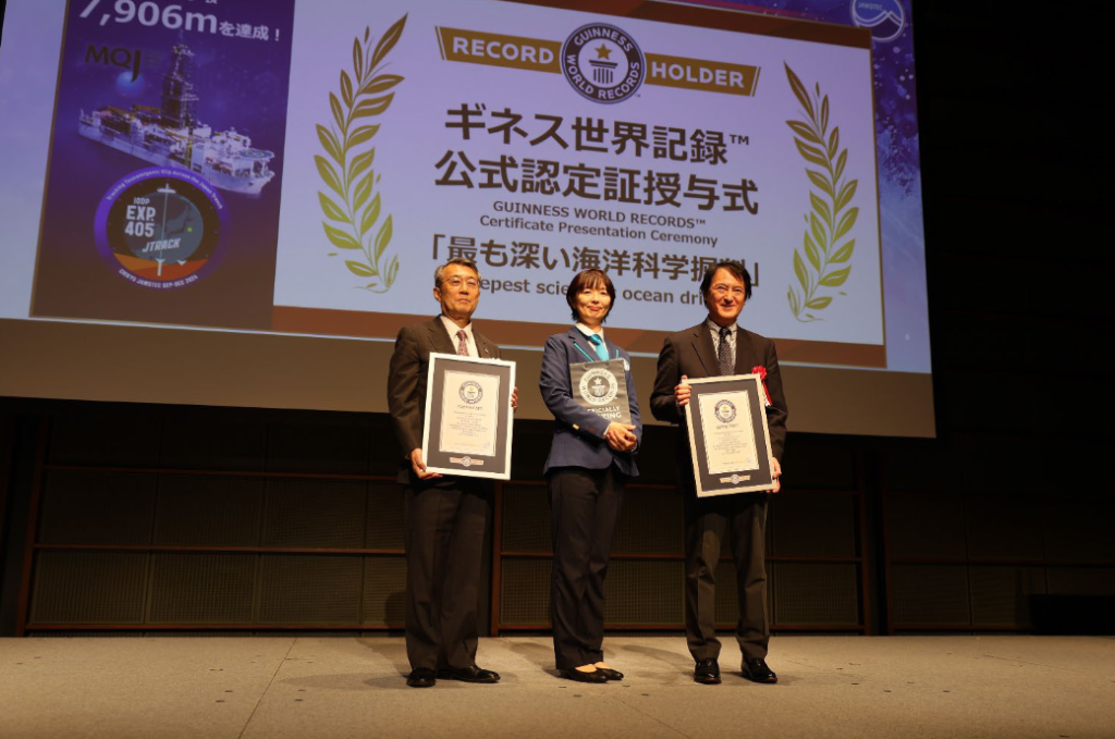 海洋研究開発機構(JAMSTEC)は、地球深部探査船「ちきゅう」が掘削作業と地層物性の計測を同時に行う掘削同時検層で総ドリルパイプが7906メートルに達した。最も深い海洋科学掘削として世界記録を樹立し、ギネス世界記録に認定されたと発表した。