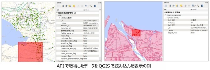 今回APIでの提供を開始した防災情報は、洪水浸水想定区域(想定最大規模)、土砂災害警戒区域、津波浸水想定、高潮浸水想定区域と指定緊急避難場所。これにより、地図表示可能な防災情報は、全てAPIで取得可能となる(洪水浸水想定区域(想定最大規模)、土砂災害警戒区域、津波浸水想定、高潮浸水区域について、地図画面はハザードマップポータルサイト、APIは国土数値情報を原典データとするため、地図画面表示とAPIで取得するデータが異なる可能性がある(指定緊急避難場所は、地図画面とAPIいずれも国土地理院のデータを原典としている)。