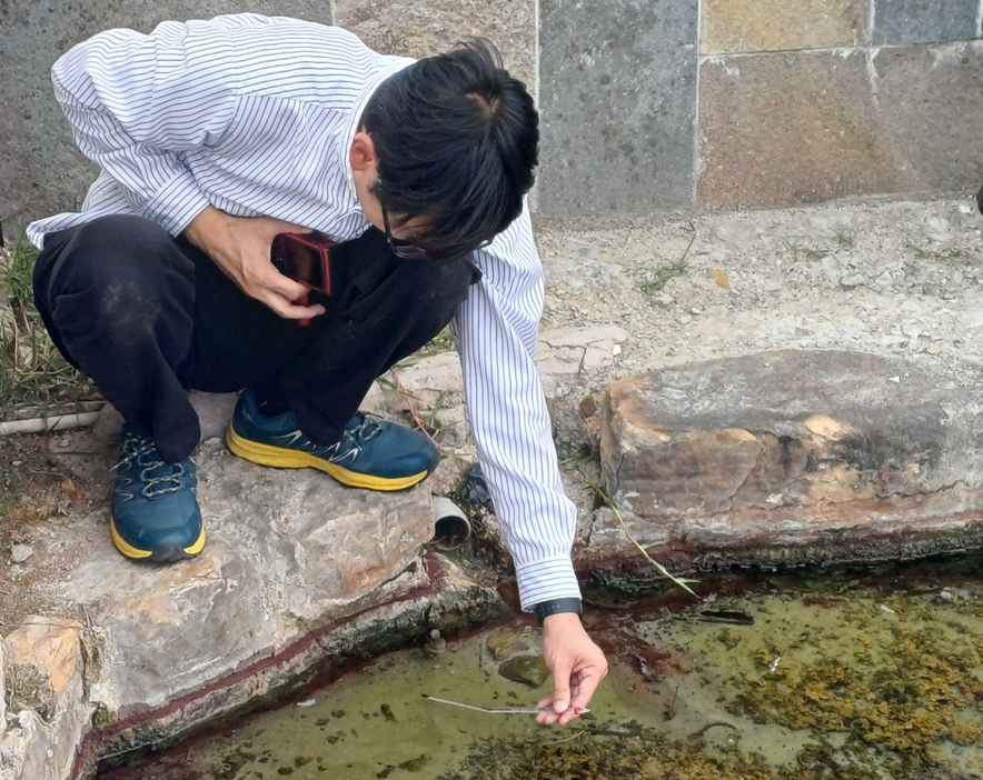 パンダメリタヨコエビを探す富川光教授(本人提供)